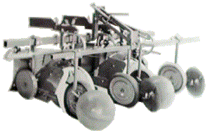 従って、マルチフィルムの取り扱いが容易です。 2.鎮圧輪と覆土用のデスクを持ち上げて上方に固定することができます。 下方に下げる時はロックをはずします。 3.成形機に樹脂がはってあるので、畦をきれいに仕上げることができます。 4.取付具を換えることにより、各種のロータリ耕耘装置に取付けることが可能です。 | |||||||||||||||||||||||